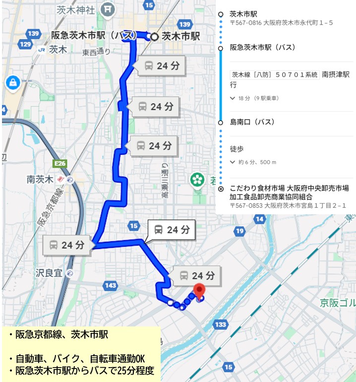 | 最寄駅 | 阪急 京都線 茨木市駅 自転車、バイク、 自動車通勤可能 |